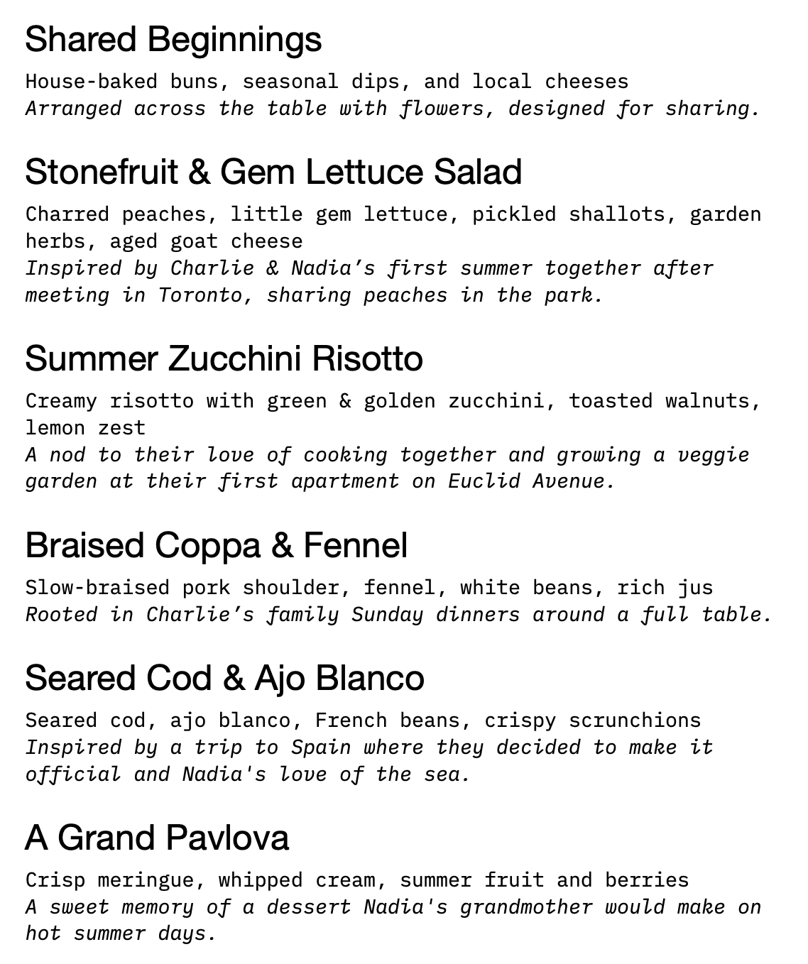 A menu that tells your love story, course by course.